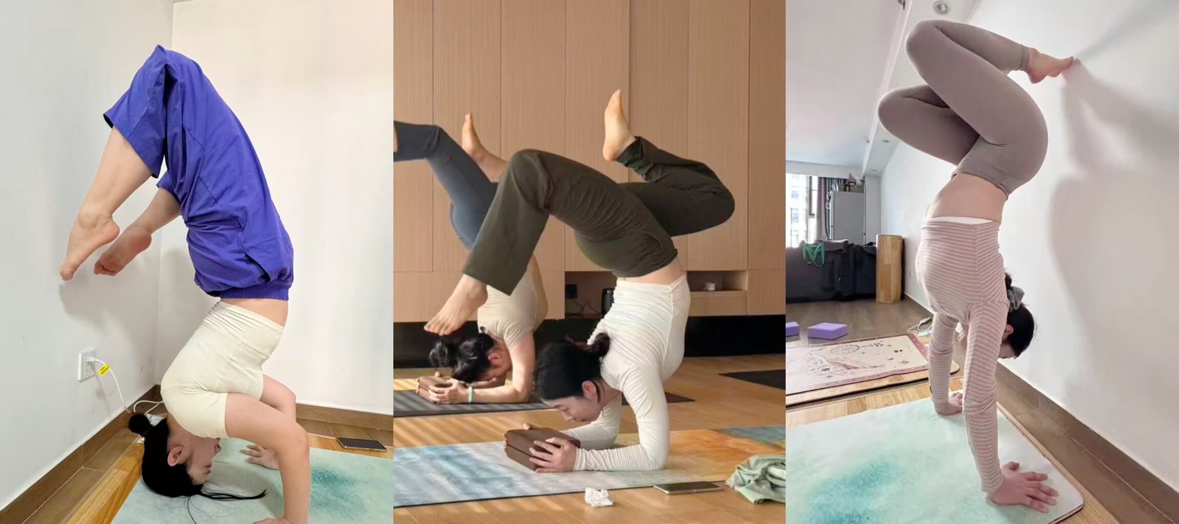 我现在甚至在想或许很多做不到的体式,并不是因为我的肩背力量不足,其实我的髋和背伸展度都挺好,但是倒置的不熟悉让我们觉得我不可能城主手倒立等体式。